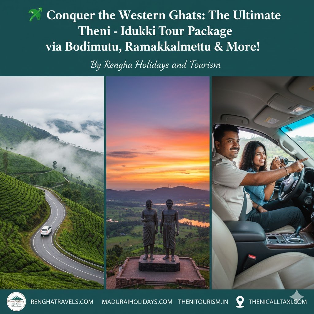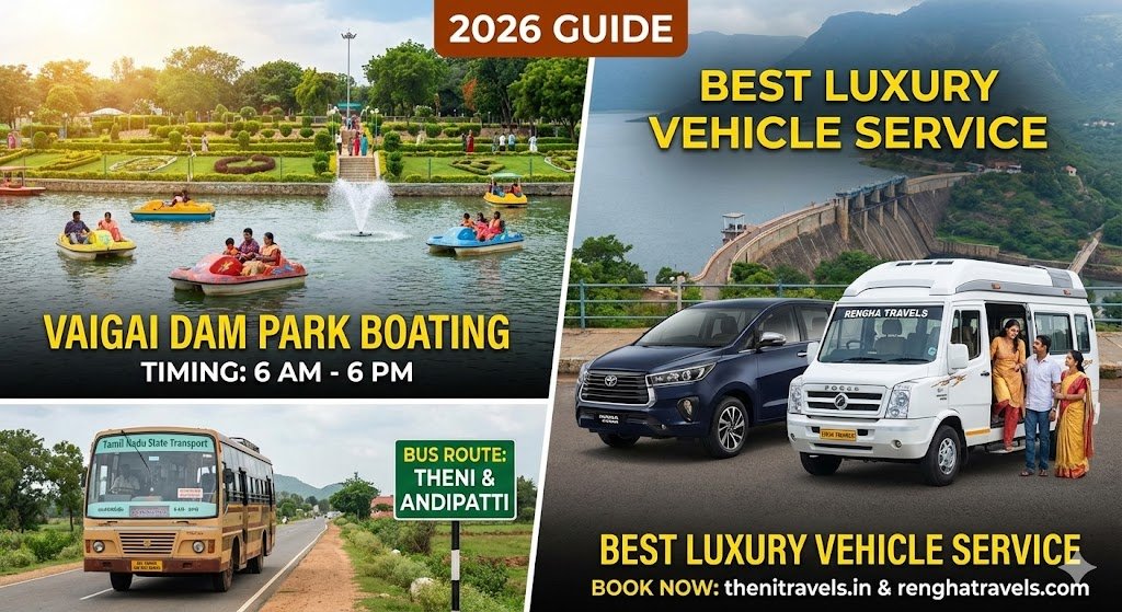 From Madurai Junction: - By Bus: Frequent bus services are available from Madurai to Theni. The travel time is approximately 2 hours. - By Taxi: Taxis are readily available, and the travel time is about 1.5 to 2 hours.