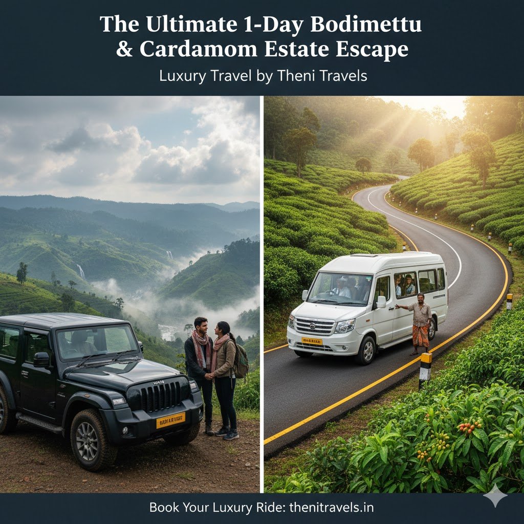 From Bodinayakkanur Railway Station: - By Bus/Taxi: Since Bodinayakkanur is close to Theni, you can take a short bus or taxi ride, which takes around 30 minutes.